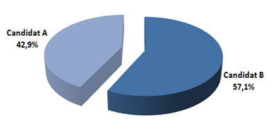 3 électeurs votent pour le candidat A et 4 pour le candidat B,