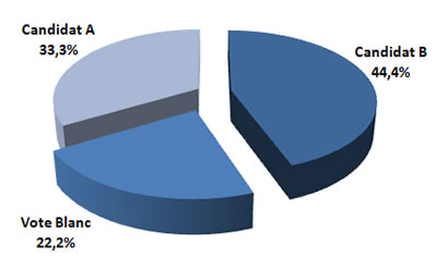 Vote Blanc : 2 votes sur 9 = 22,2 %