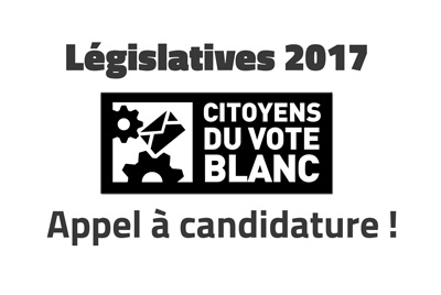 Admin, , Actualités des Citoyens du Vote Blanc, Législatives 2017, 0Les “Citoyens du Vote Blanc” présentent leurs candidats aux élections législatives dont le premier tour se tient le 11...