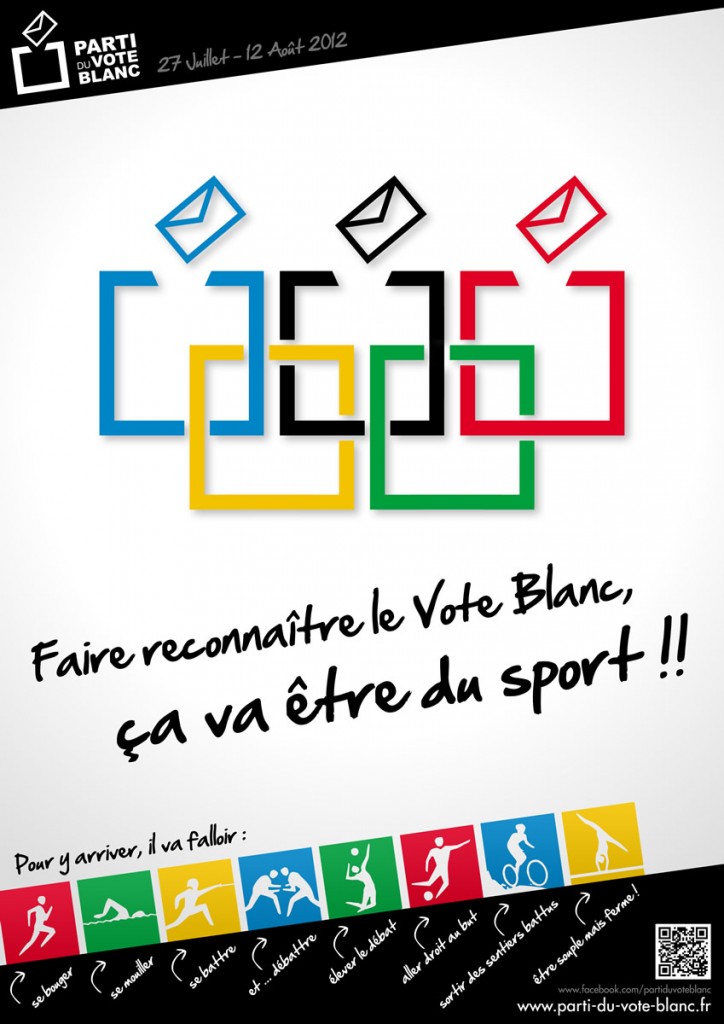 Avec la cérémonie d’ouverture qui a lieu aujourd’hui, le Parti du Vote Blanc se grime aux couleurs olympiques car faire reconnaitre le vote blanc, ça va être sportif !