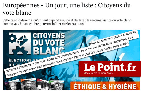 Un article du Point sur les listes des Citoyens du Vote Blanc, avec un résumé en forme de clin...