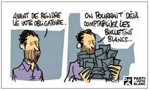 Pour faire passer la pilule de l’obligation de voter, la prise en compte du vote blanc est donc présentée comme une compensation vertueuse, un peu comme on donnerait un jus de fruits à un enfant malade pour lui faire passer le mauvais goût de son médicament. Dès lors que l’électeur aurait la possibilité de refuser les candidats en votant blanc, il n’y aurait plus rien de gênant à rendre le vote obligatoire. Mais les apparences sont souvent trompeuses. Vote obligatoire et vote blanc ne sont pas complémentaires ; ils sont contradictoires. Partant en effet du principe qu’au vote obligatoire corresponde une sanction financière (qui pénaliserait davantage certains électeurs que d’autres), le vote blanc deviendra une sorte de refuge électoral destiné uniquement à éviter de payer l’amende prévue par la loi. Impossible alors de distinguer le vote de conviction, éclairé et exigeant, du vote poubelle motivé uniquement par la peur du gendarme. Le vote obligatoire aura pour effet de transformer un message politique clair en une banale corvée administrative. Le vote blanc, lui, perdra tout son sens et toute la force d’une contestation constructive et volontaire.